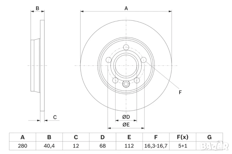 Диск спирачен заден дeсен/ляв за VW TRANSPORTER T4 1.8-2.8 07.90-06.03г.№ V2391P