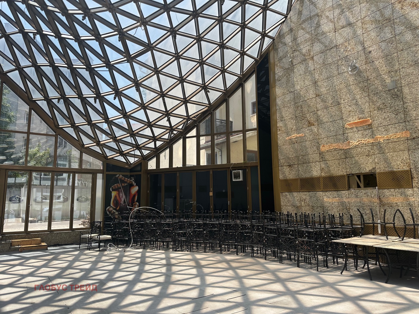 Целогодишно използваема зимна градина на партер с площ от 216кв.м,за около 100 места