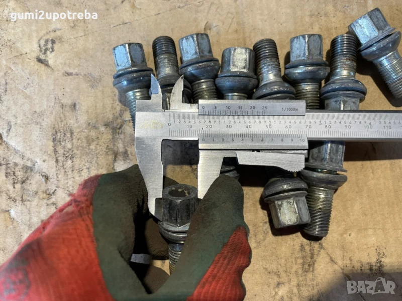 Продавам 12броя Оригинални болтове за джанти-Употребявани. Параметрите се виждат по снимките, те са и част от описанието.