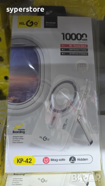 преносима батерия 10 000 mAh KLGO KP-42 SS000560, с безжично зарядно 20W, wireless charger, USB-A, USB Type C, PD, 22,5W, преносимо зарядно