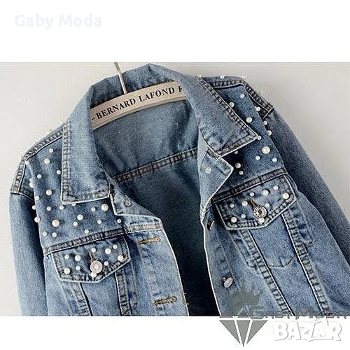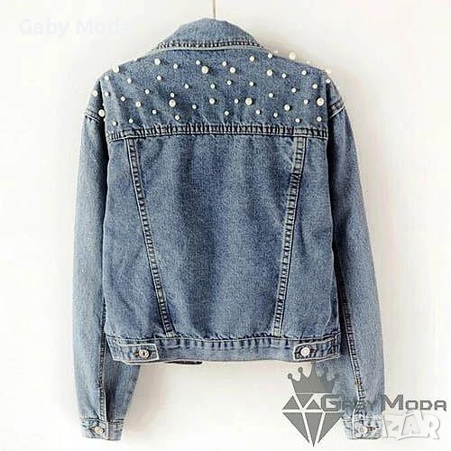 Дънково дамско яке с перли → Обява 51039534