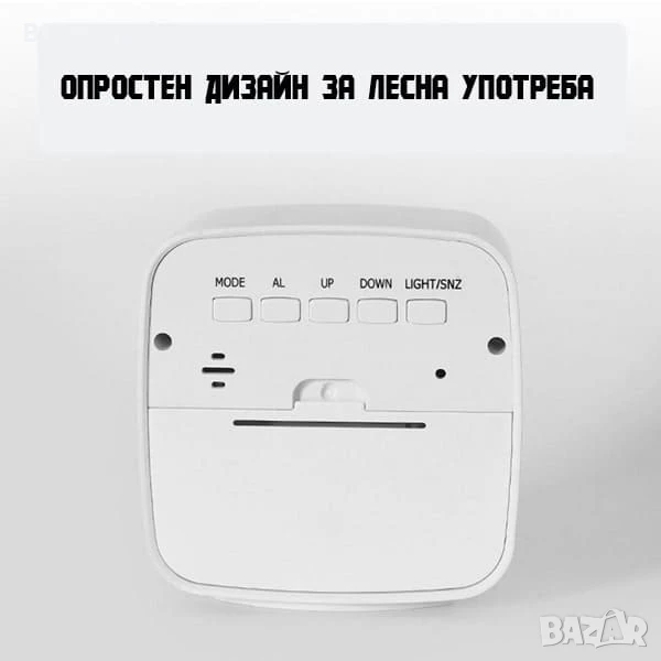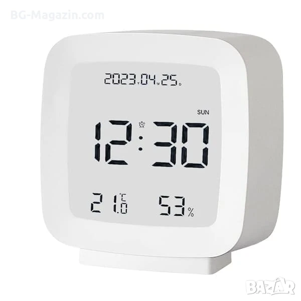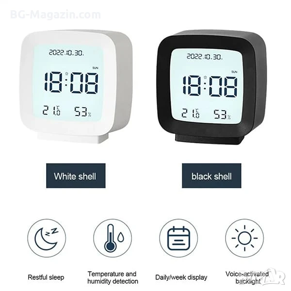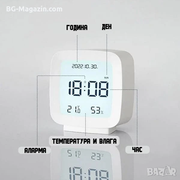 – Многофункционалност: Часовникът предлага широк набор от функции, включващи показване на час (в 12/24-часов формат), аларма, измерване на влажност и температура (°F/°C).