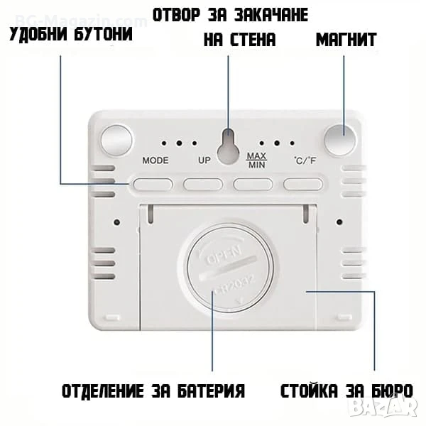 – Дълъг живот на батерията: Батерията CR2032 осигурява продължителна работа, което ви спестява от честа смяна на батериите.