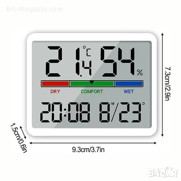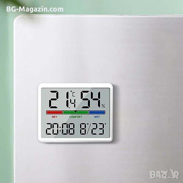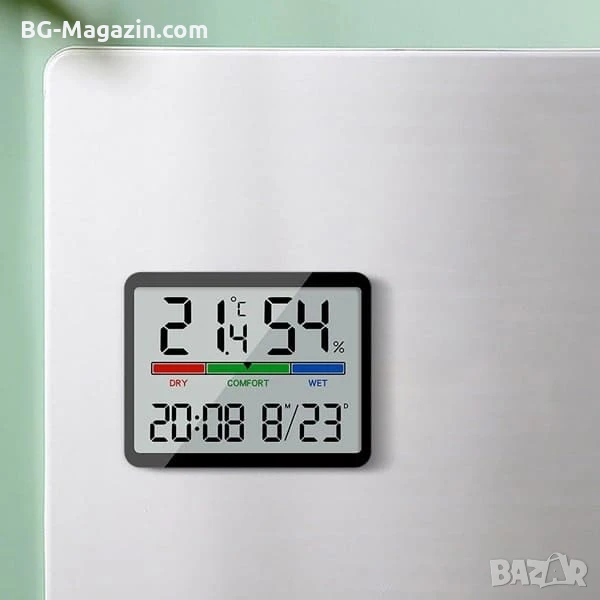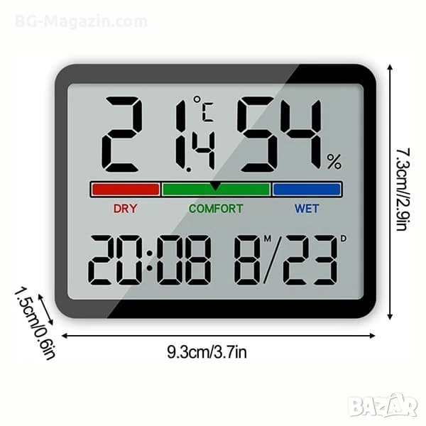 – Голям LCD дисплей: Осигурява ясна и лесна за четене информация за температурата, влажността, датата и часа от разстояние.
