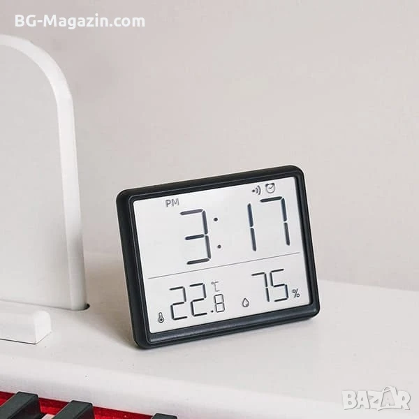 – Многофункционалност: Комбинира функциите на часовник, термометър, влагомер и календар в едно компактно устройство.