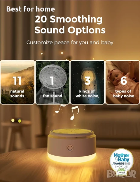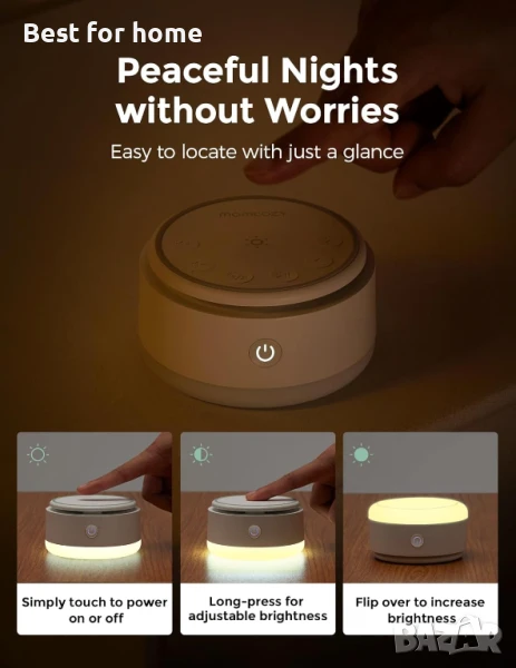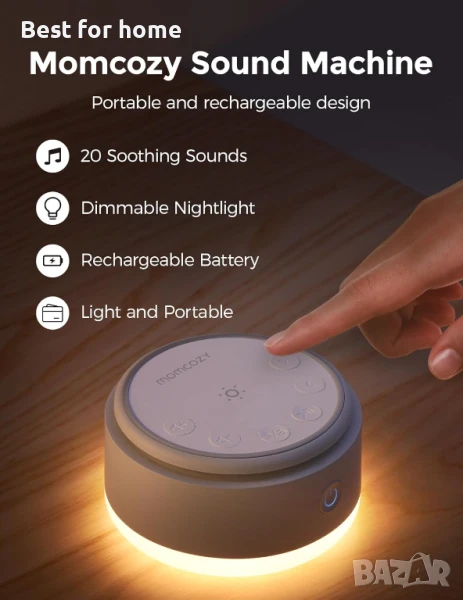 Momcozy звукова машина за бебе - 20 успокояващи звука и докосване, топла светлина, преносим бял шум за деца и възрастни с таймер за сън и памет | Идеален спътник за пътуване и задължителен аксесоар за детската стая