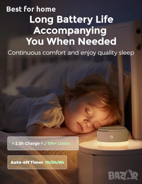 【20 успокояващи звука】С 20 успокояващи звука за сън, включително бял шум, розов шум, кафяв шум, зелен шум, звуци от вентилатор и звуци от природата като океански вълни, дъжд, пращене на лагерен огън, чуруликане на птици, чуруликане на щурци и музика за медитация, тази лампа осигурява спокойна нощна почивка и задоволяване на ежедневните нужди от релаксация.