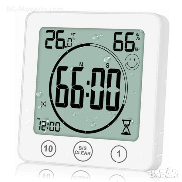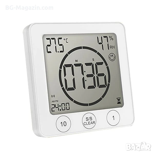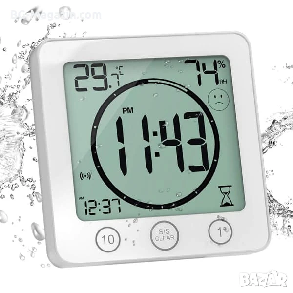 Представяме ви водоустойчив дигитален часовник с термометър влагомер и таймер за баня – компактен и функционален уред, който ще ви държи информирани за времето, датата, температурата и влажността във вашия дом или офис. Със своя стилен дизайн, водоустойчивост и множество удобни функции, този часовник е идеалният аксесоар за всяко помещение.