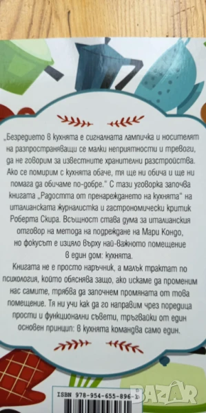 С тази уговорка започва книгата „Радостта от пренареждането в кухнята“ на италианската журналистка и гастрономически критик Роберта Скира. Всъщност става дума за италианския отговор на метода на подреждане на Мари Кондо, но фокусът е изцяло върху най-важното помещение в един дом: кухнята.