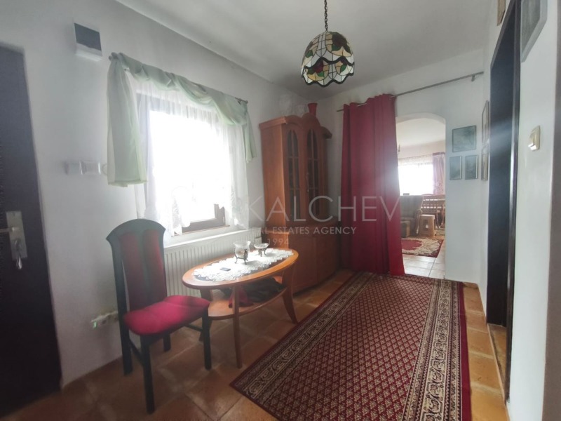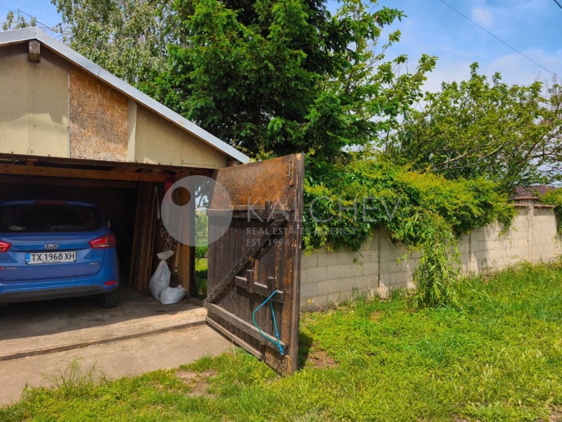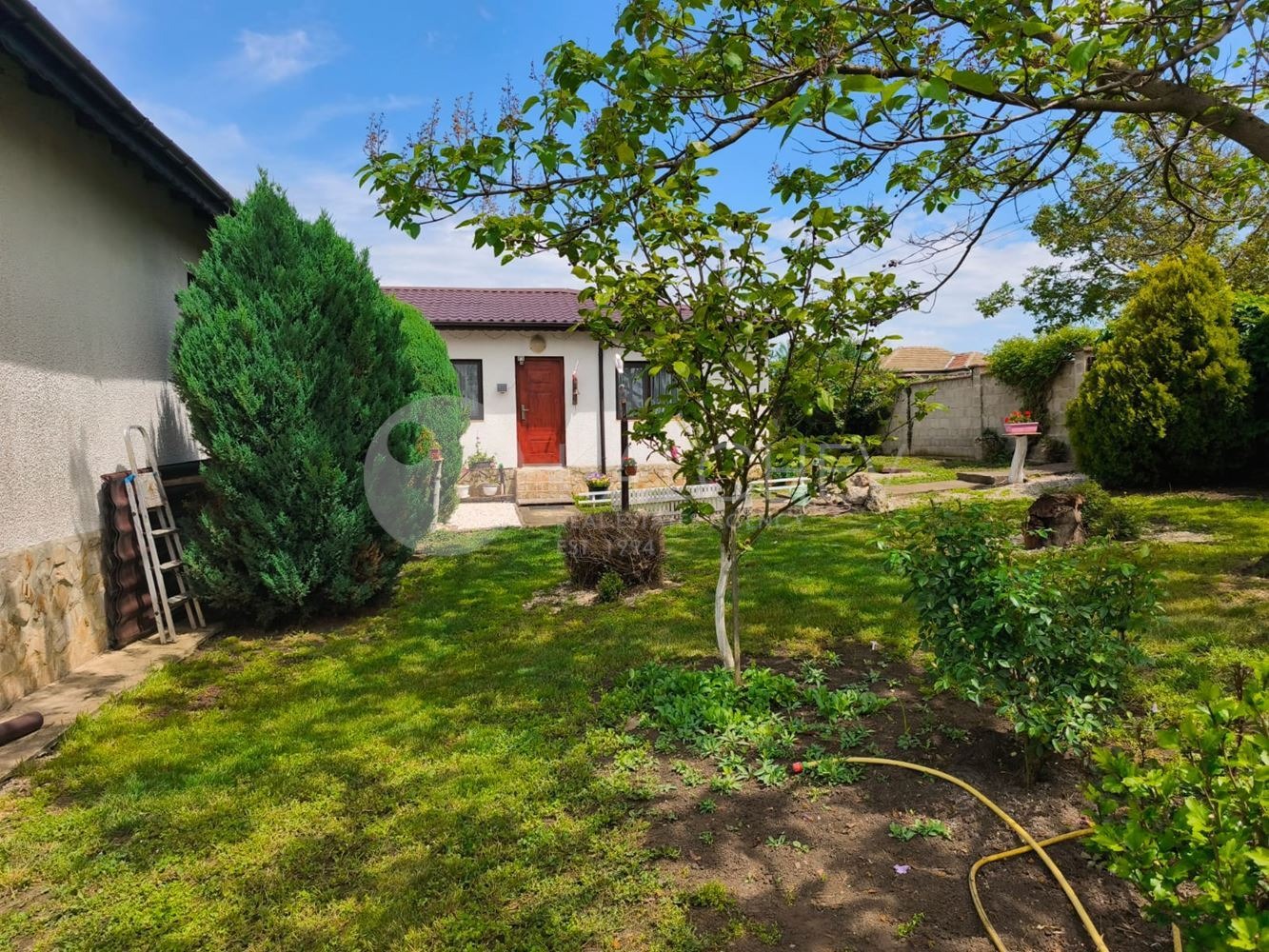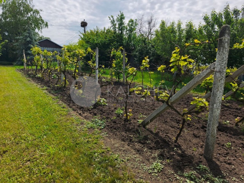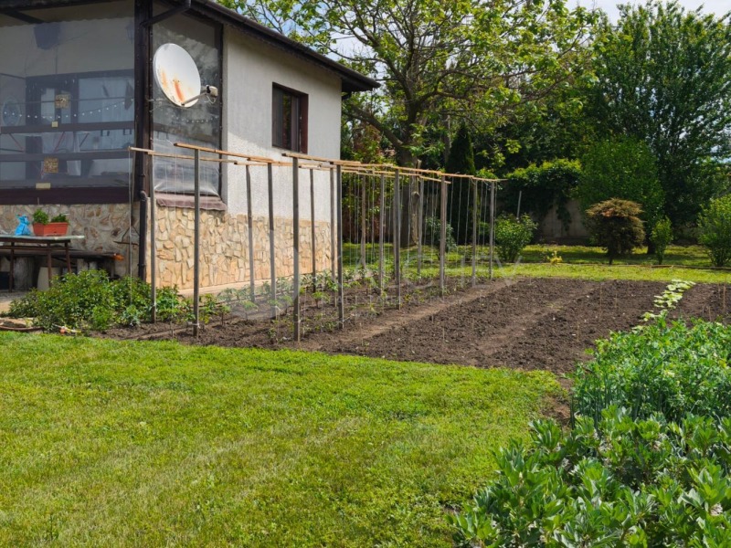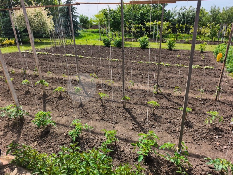 Парцел 2500 кв.м, ограден с масивна ограда, озеленен с овощни дървета и зеленчукова градина. Има площадка за отдих и барбекю.