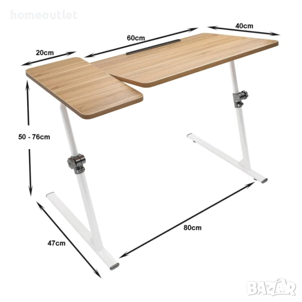 Д x Ш x В = (60+20) см * 40 см * (50~76 см) Височината е регулируема;