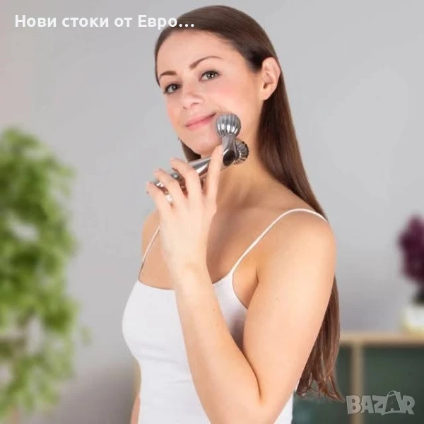 Козметичен масажор за лице inSPORTline Milva3D масажна ролка с високочестотни вибрации и електрическа мускулна стимулация (EMS). Отпуска напрегнатите мускули, повдига контурите на лицето и в същото време осигурява приятна релаксацияКозметичен масажор за лице inSPORTline Milva със соларен панел и две кръгли глави с нарези по повърхносттта, които масажират кожата на лицето и по този начин отпускат не само мускулите, но и ума. Уредът за масаж Milva е с две функции. Една от тях са високочестотните вибрации с честота 8000 RPM, които подобряват кръвообращението. Втората функция на уреда е EMS или електрическа мускулна стимулация, която стимулира мускулите с електрически импулси. Това води до ефективен масаж и същевременно повишава еластичността на кожата и изглажда нейните несъвършенства. Можете да зададете интензивността на двете функции в 6 нива според предпочитанията си.Двете 3D ролкови глави придърпват кожата заедно и масажират лицевите мускули. Мускулите се отпускат приятно, а тъканите се оросяват. В същото време натискането/дърпането нагоре (лифтинг) повдига линиите на лицето. С редовен масаж ще постигнете по-стегната кожа. Конструкцията на уреда Milva е по-подходяща за масажиране на средни и по-големи мускули - лице, шия, ръце, прасци, бедра, ханш. Красивият елегантен дизайн допълва предимствата на масажора. След като откриете магията на нашите масажни уреди, няма да търсите други!