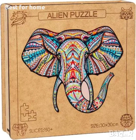Alien Puzzle Дървен пъзел с форма на животно 4 вида-вълк, тигър, слон и лъв Цена 1 брой-28лв. Описание на продукта