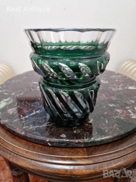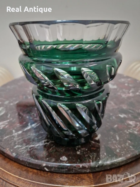 Страхотна антикварна колекционерска белгийска кристална ваза Val Saint Lambert → Обява 51041371