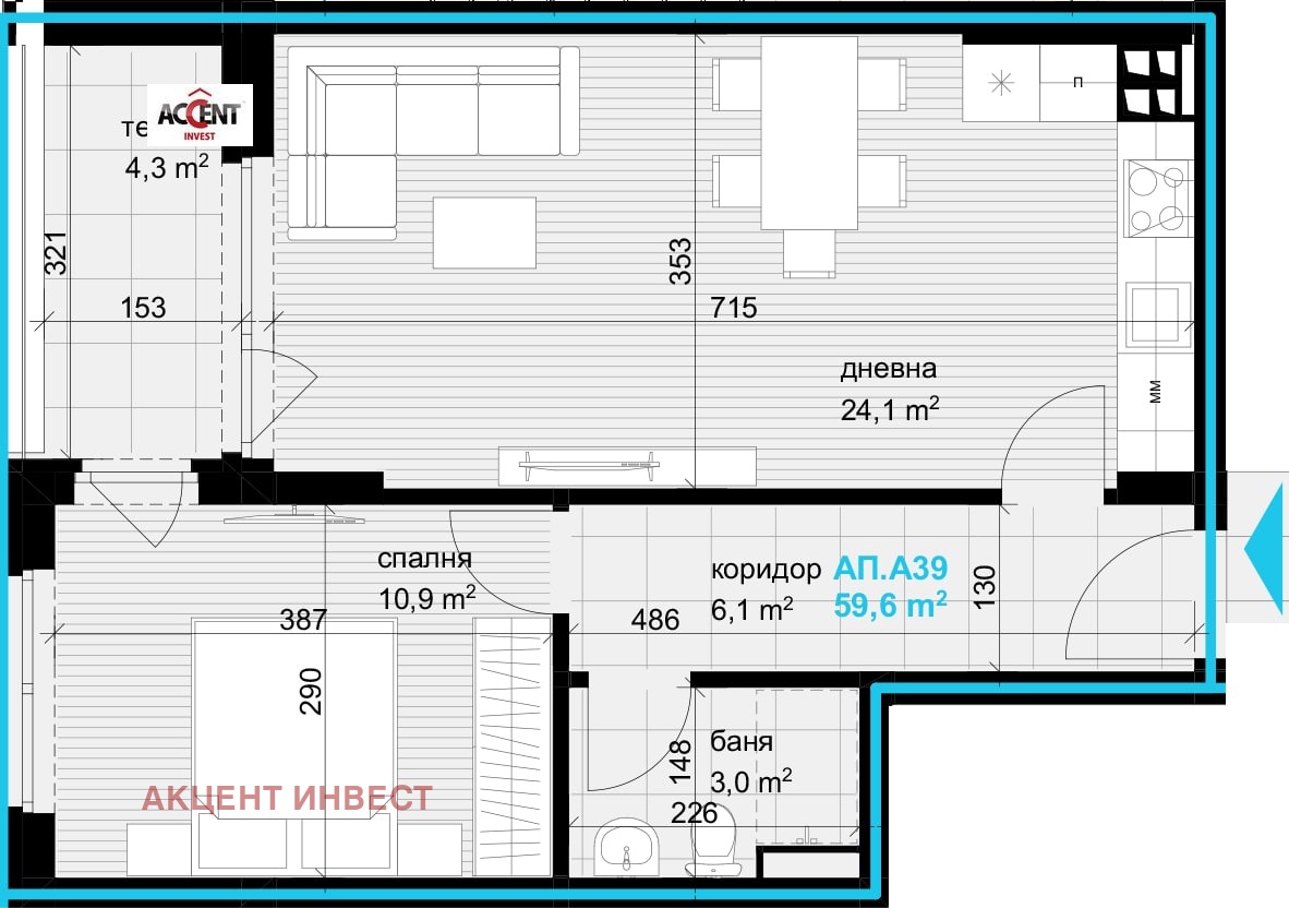 Акцент Инвест представя на Вашето внимание двустаен апартамент, разположен в новопостроен жилищен комплекс Елисия Грийн в кв.Аспарухово.