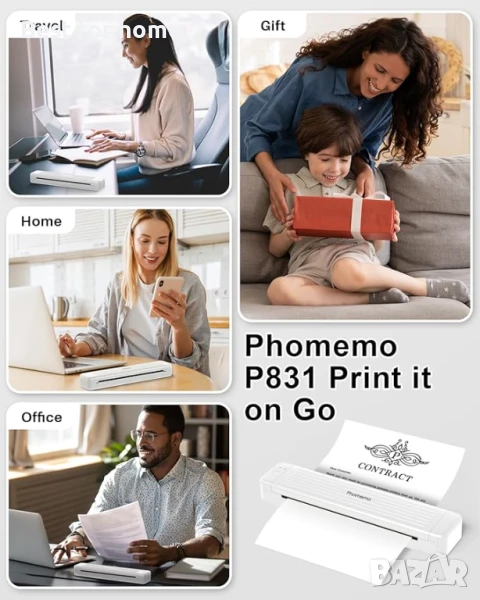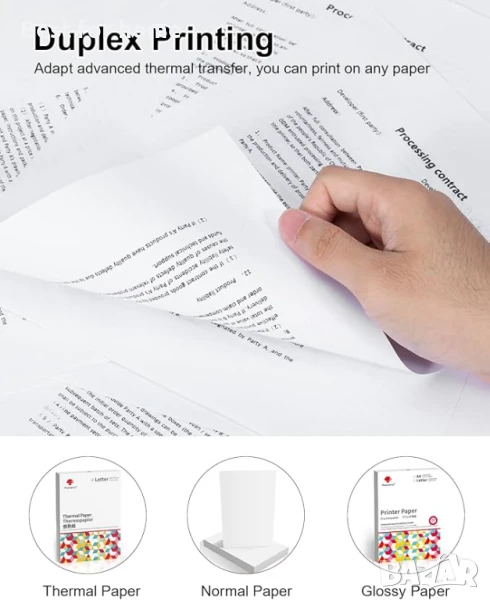 Качество на печат 300 DPI: Термопринтерът Phomemo P831 a4 поддържа печат на PDF документи, договори, фактури, уеб страници и тестови документи, което го прави подходящ за печат на безсрочни договори и важни документи. (Моля, обърнете внимание, че не се препоръчва печат на изображения на човешки лица, животни или други лични изображения.)