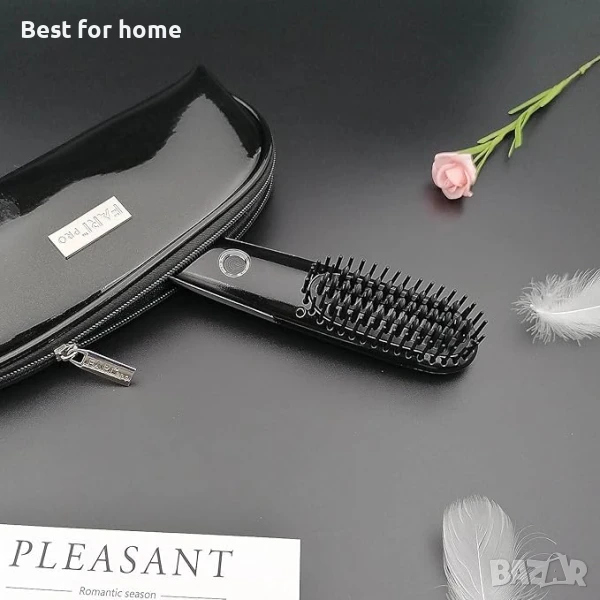 Мини четка за изправяне на коса ZLPMARY, четка за изправяне на коса за пътуване с двойно напрежение, мини ютия с горещ гребен с калъф за пътуване, черна
