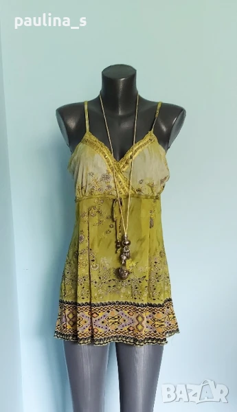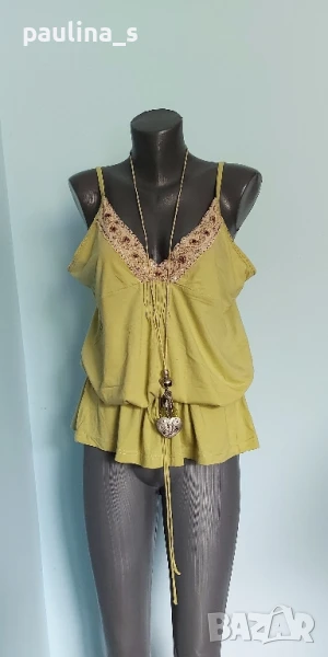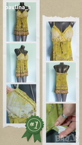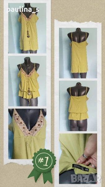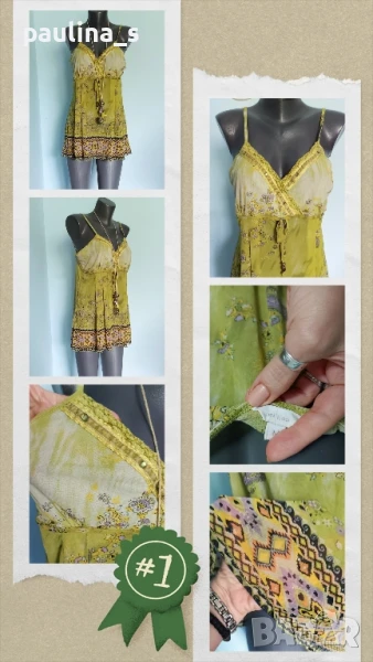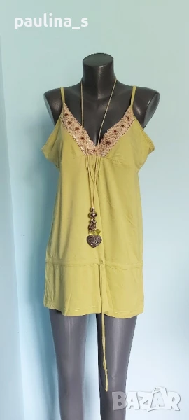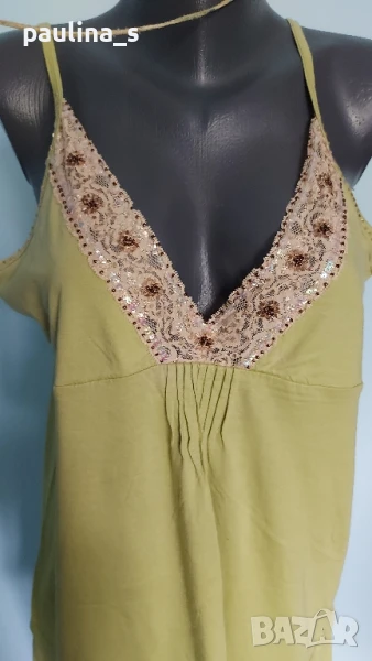 3️⃣. Колаж / XL / 3XL - "George". Цената е крайна 29,99лв / 15 евро. Зелена декорирана памучна туника с регулируема ширина и дължина, с пронизан шнур. Презрамките също се регулират. Материята е 100% органичен памук, хипоалрегична и прохладна. Една бройка е, без дефекти и етикет.