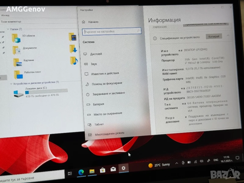 - Intel Core i7-1185G7 (4-ядрен, 8-нишков, 3.00 - 4.80GHz, 12MB кеш)