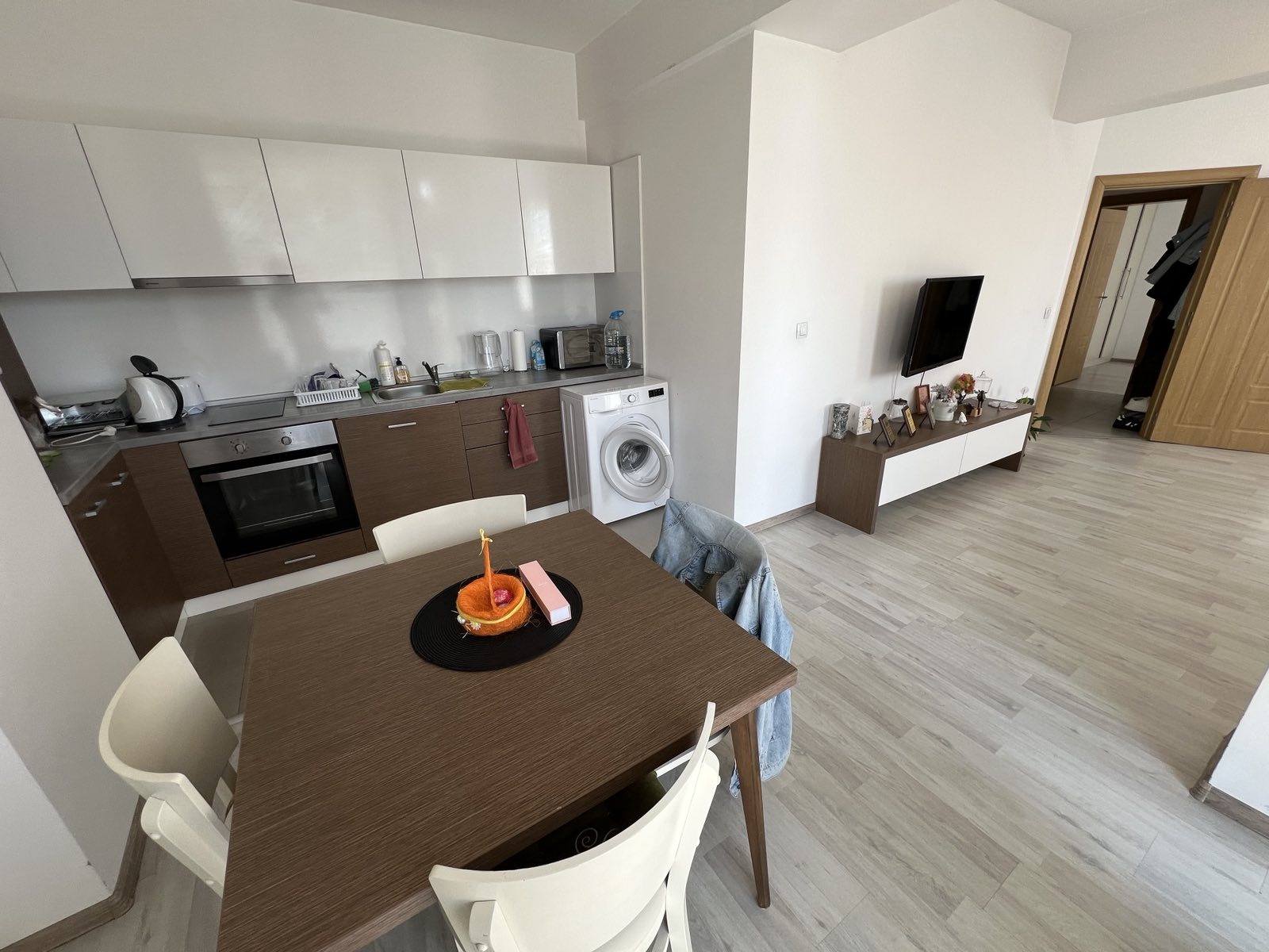 Състои се от коридор, просторна дневна с кухня и тразпезария, спалня, баня с тоалетна, мокро помещение и балкон.