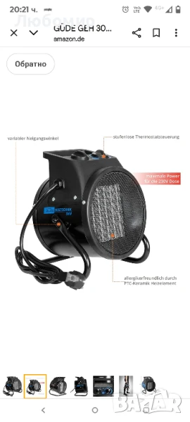Топлинна мощност 2580 kcal/h.Автоматично изключване чрез термостат и защита от прегряване.