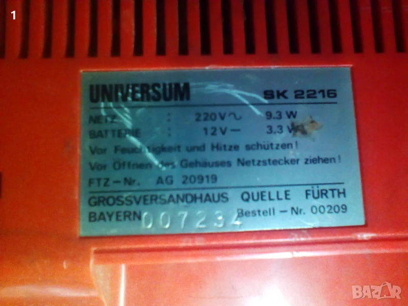 Мини черно-бяло телевизорче с радио Universum, от 70-те години, модел SK 2216, работещо на 12 и 220 волта.Радиото също работи, но не може да се настройват станциите /стои на едно място/. Подходящо предимно за колекция, тъй като е с аналогов тунер. Без захранващ кабел.