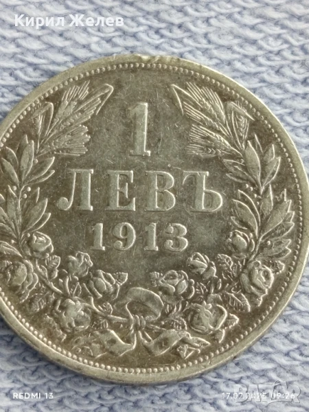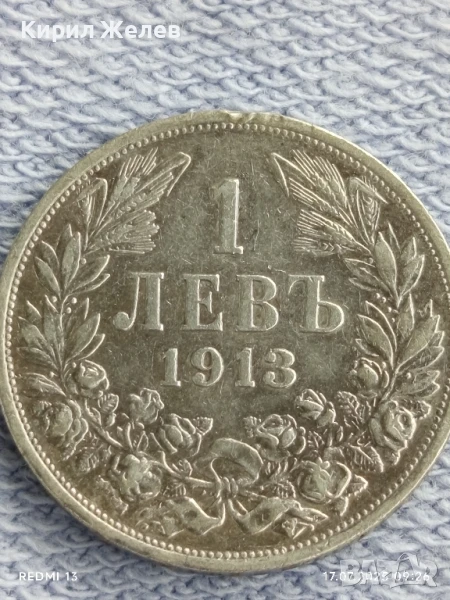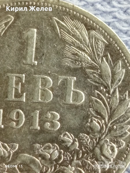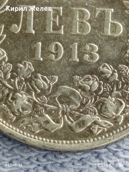Сребърна монета 1 лев 1913г. Царство България Цар Фердинанд първи за КОЛЕКЦИЯ 40191