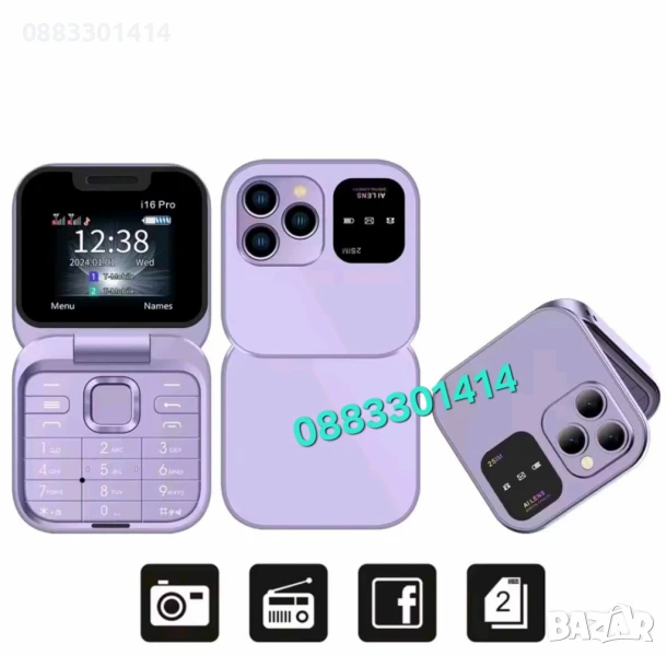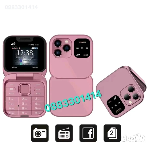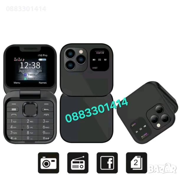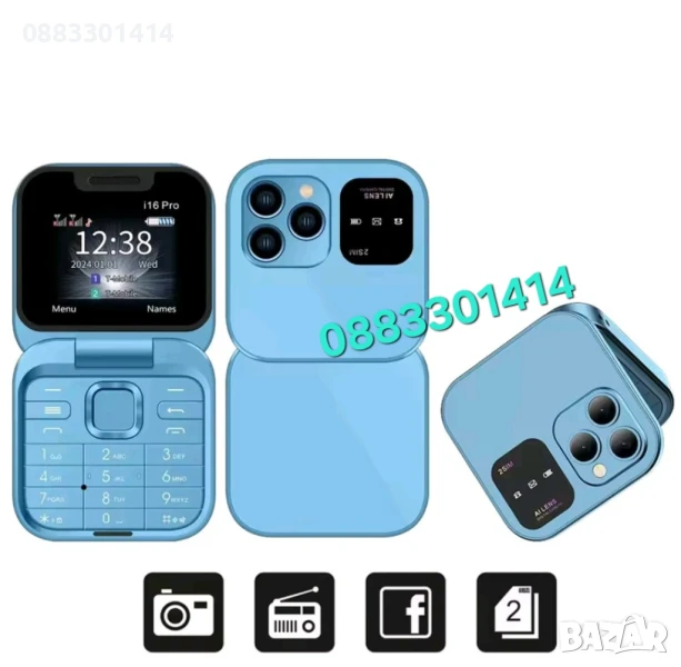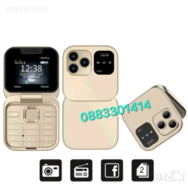 Намаление! Сгъваем мобилен телефон i16 Pro – 2 SIM, камера, фенерче, FM радио