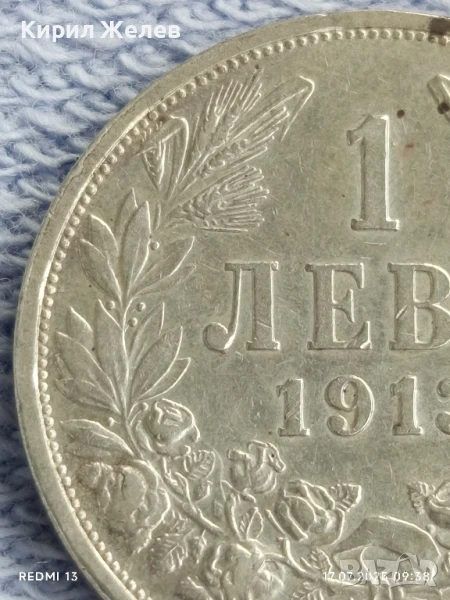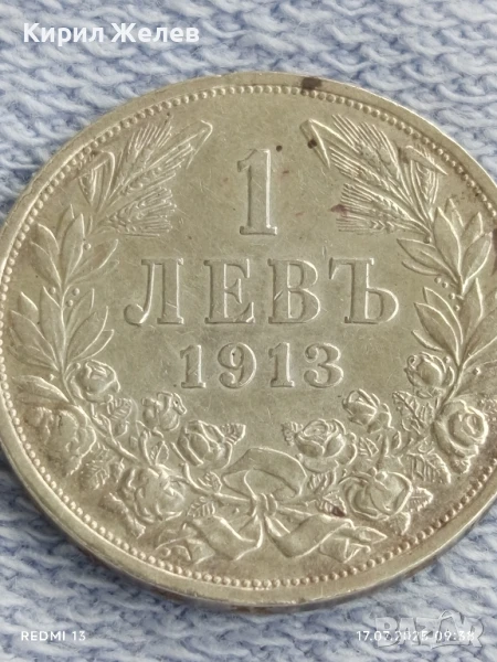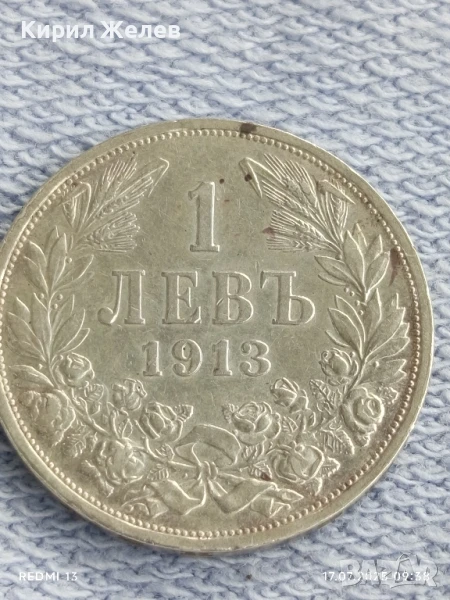 Сребърна монета 1 лев 1913г. Царство България Цар Фердинанд първи за КОЛЕКЦИЯ 29709