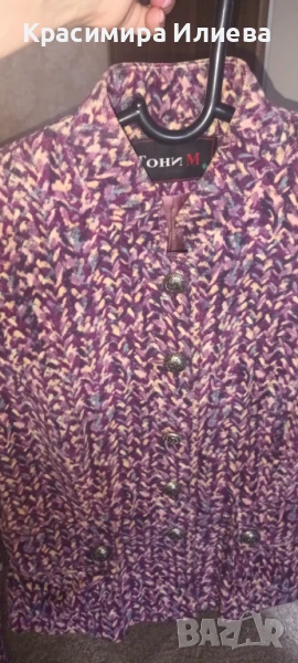 Многоцветно и стилно сако на русенската фирма Тони М. Размер 42,материята плътна,подходящо за по-студено време. Използвано с нормални следи от употреба.