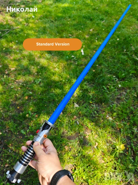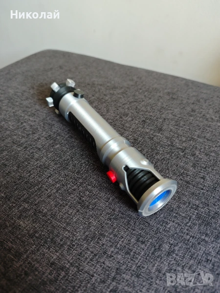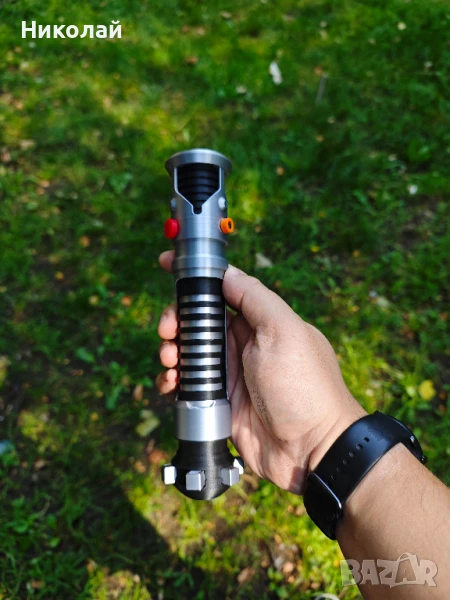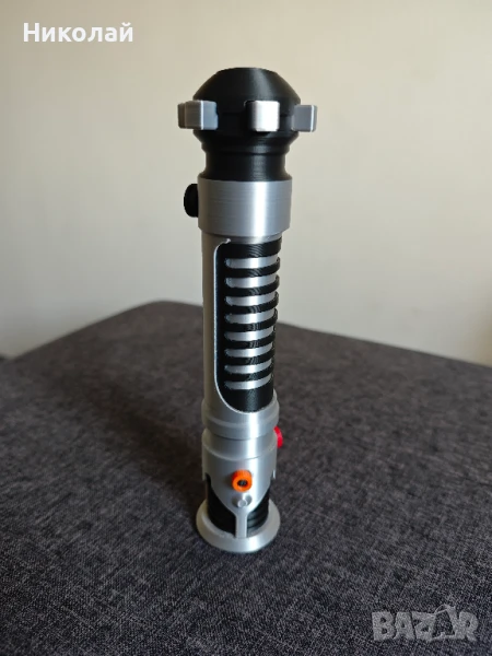 - 3D принтирана дръжка: Проектирана с висока детайлност и издръжливост, със сребристо/метално и черно покритие с емблематични дизайнерски елементи, верни на меча на Оби-Уан.