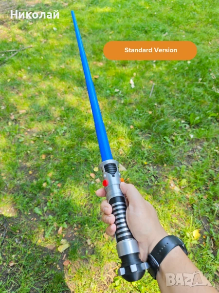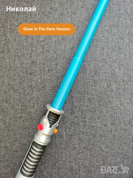 Забележка: Това е неелектронен предмет, предназначен за визуална привлекателност и безопасна игра. Версията, която свети в тъмното, изисква предварително излагане на светлина. Версията, която свети в тъмното, има острие в по-светъл син цвят през деня.