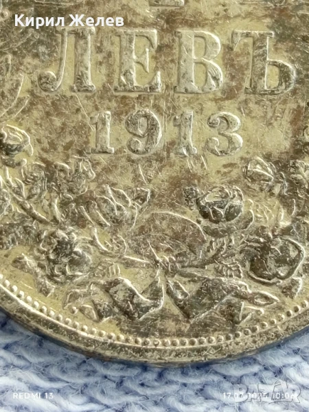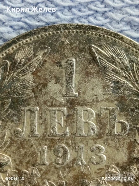 Сребърна монета 1 лев 1913г. Царство България Цар Фердинанд първи за КОЛЕКЦИЯ 18922