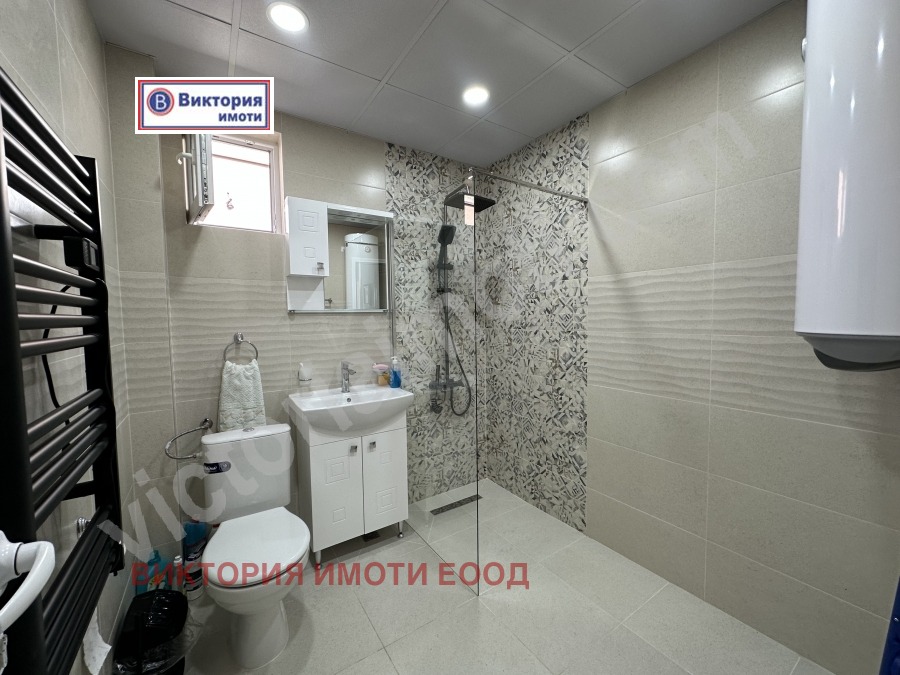 Първият етаж е изцяло ремонтиран със сменени подови настилки с гранитогрес и ламинат, стените и таваните са с вароциментова мазилка, шпакловани и боядисани с латекс, подменена нова PCV дограма и нова блиндирана врата. Банята с тоалетната е изцяло завършена и оборудвана с необходимата санитария.