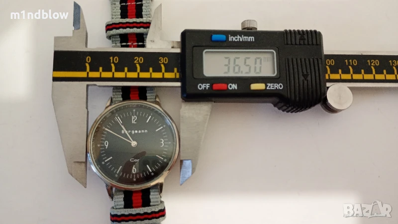 Часовник Bergmann Cor, с батерия. Текстилна каишка, много запазен. Размери на снимките. Пращам с Еконт.
