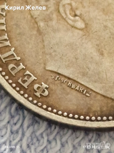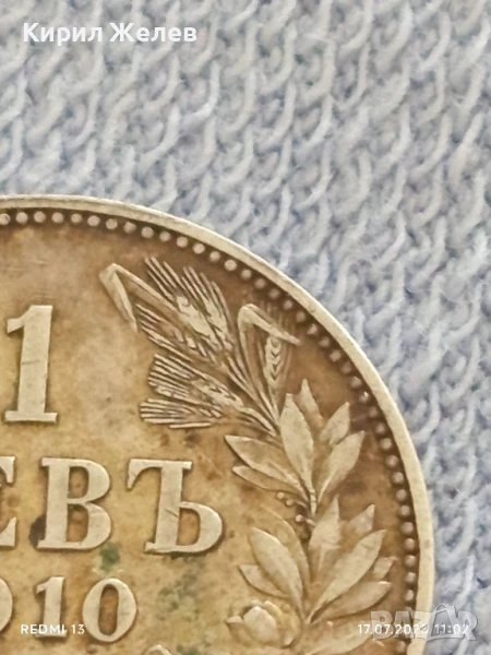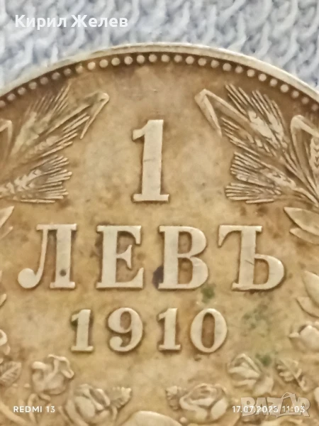 Сребърна монета 1 лев 1910г. Царство България Цар Фердинанд първи за КОЛЕКЦИЯ 25952 → Обява 51048654