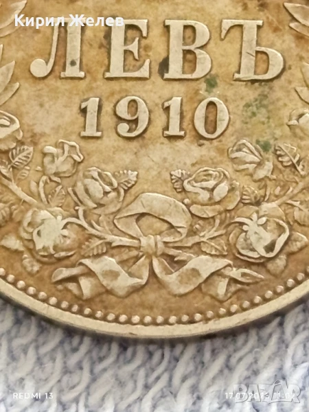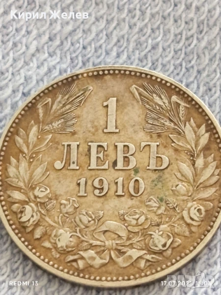 Сребърна монета 1 лев 1910г. Царство България Цар Фердинанд първи за КОЛЕКЦИЯ 25952