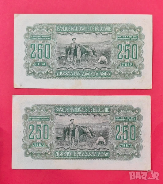 250 лева 1943 Серия А - 2 броя с поредни номера XF → Обява 51049229