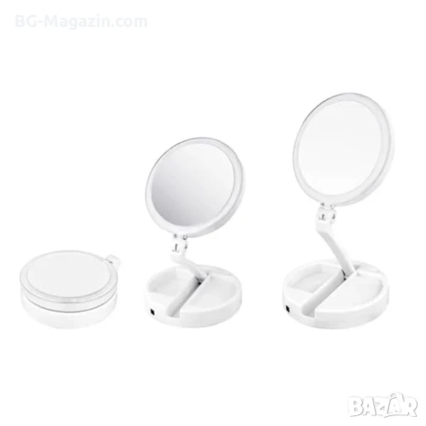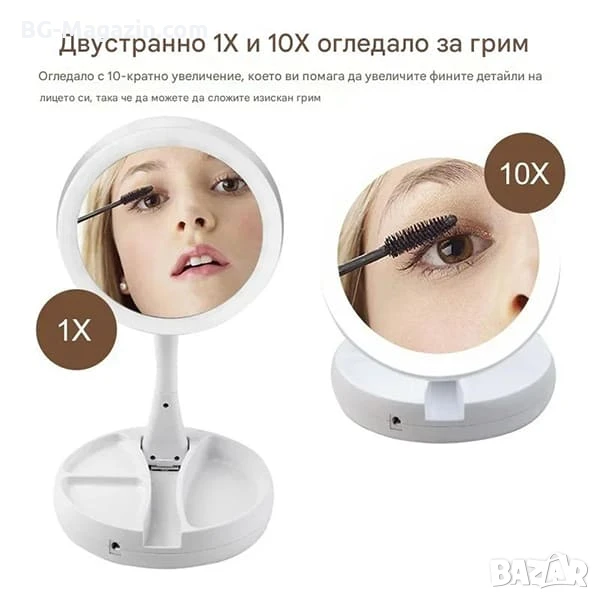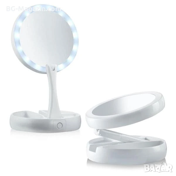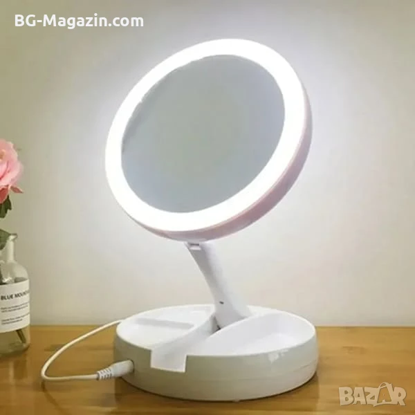 1 бр. луксозно сгъваемо настолно огледало с LED осветление и 10x увеличение
