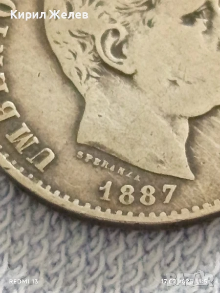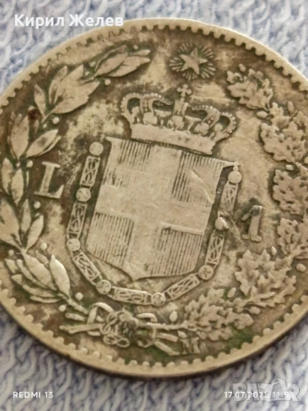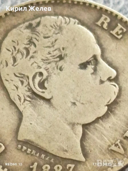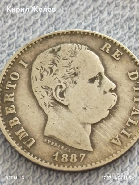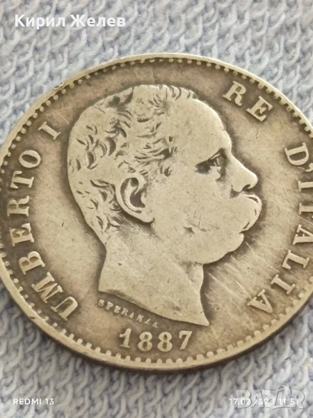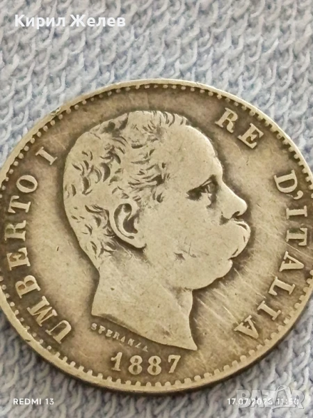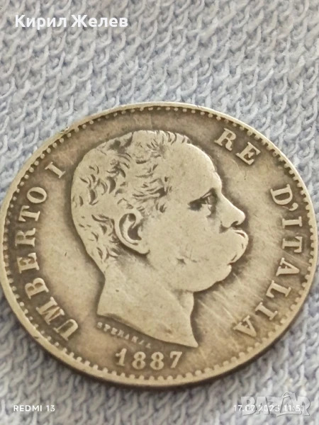Сребърна монета 1 лира 1887г. Италия Умберто първи за КОЛЕКЦИЯ 38803