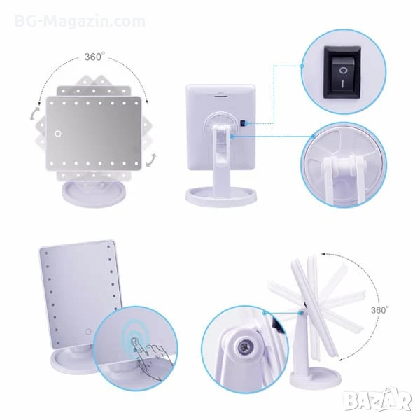 Това луксозно сгъваемо настолно огледало е перфектната комбинация от функционалност, елегантност и удобство. То ще ви помогне да създадете безупречен грим и да се чувствате уверени в себе си всеки ден. Поръчайте своето огледало с лед осветление още днес и се насладете на професионално качество у дома!
