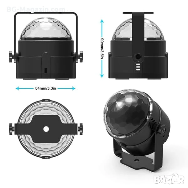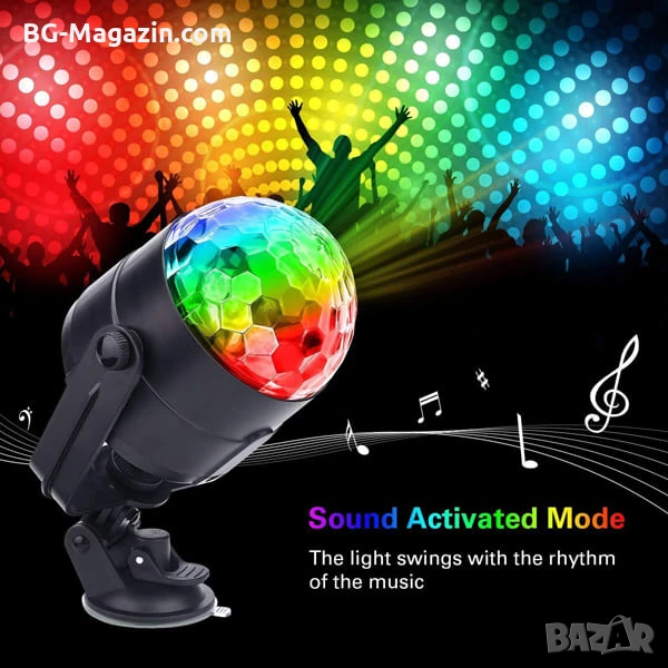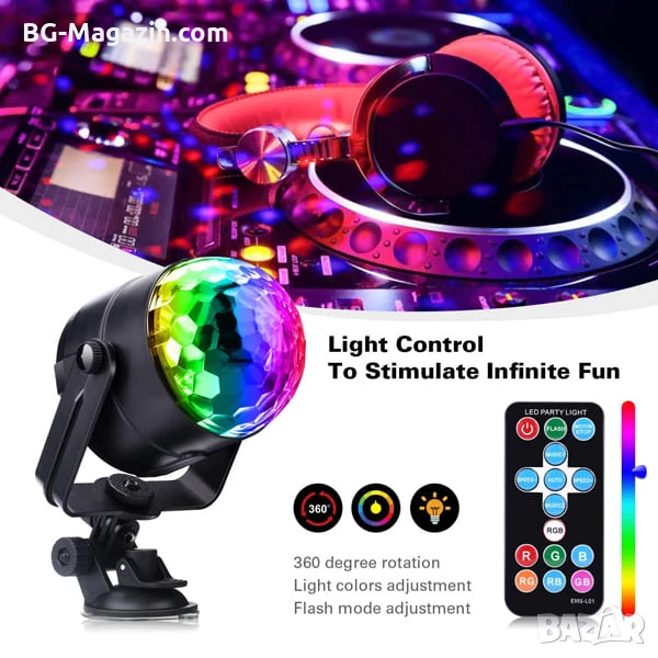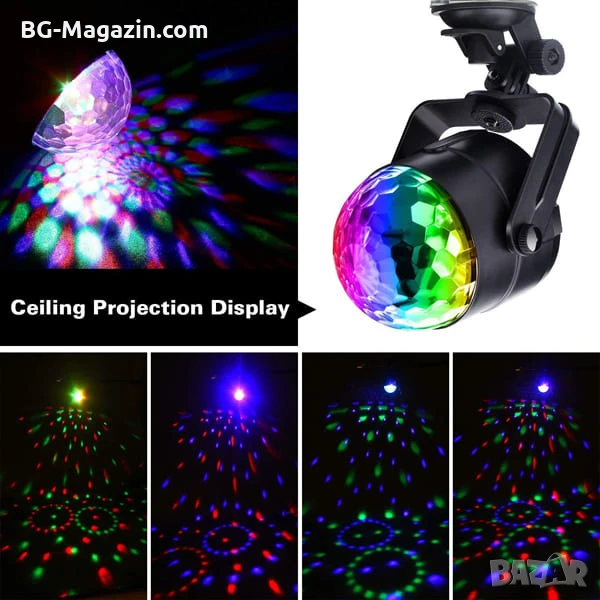 – Разнообразни цветове и режими: 7 цвята (червен, зелен, син, комбинирани цветове) и 5 режима на работа (активиране със звук, автоматичен режим, мигаща светлина, режим на спиране на мотора) ви позволяват да създадете перфектната светлинна шоу програма за всяко настроение и музика.