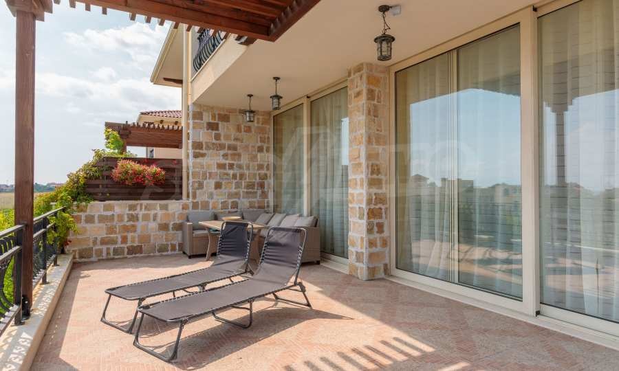 Къщата е завършена в средиземноморски стил, на три нива с вътрешно стълбище, и предлага всичко необходимо за пълноценния Ви семеен отдих.