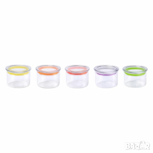 Материал: Боросиликатно стъкло;Вместимост: 350 ml;Температурна устойчивост: до 300°C;Капак: Акрил с цветен силиконов уплътнител;Подходящ за хладилник и микровълнова;Подходящ за течности;Цветове: Зелен, червен, оранжев, жълт, лилав.Доставка с Еконт до 4 работни дни