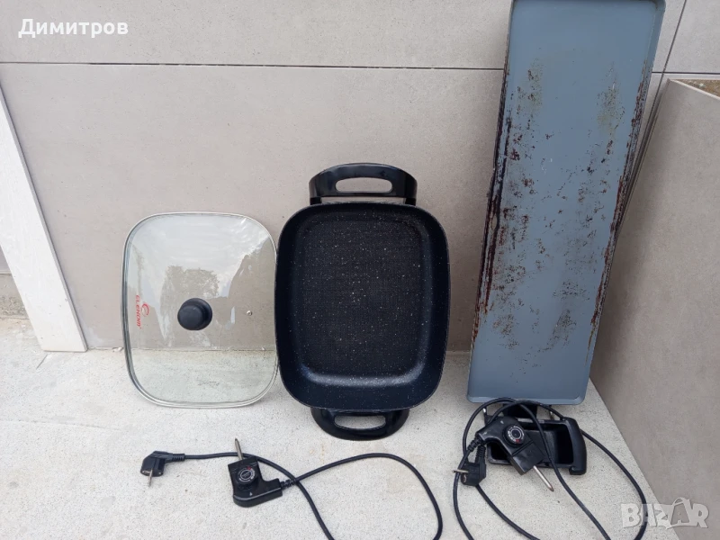 Грил голяма плоча с резервоар за оттичане на мазнината и почти нов Ел. Тиган,
