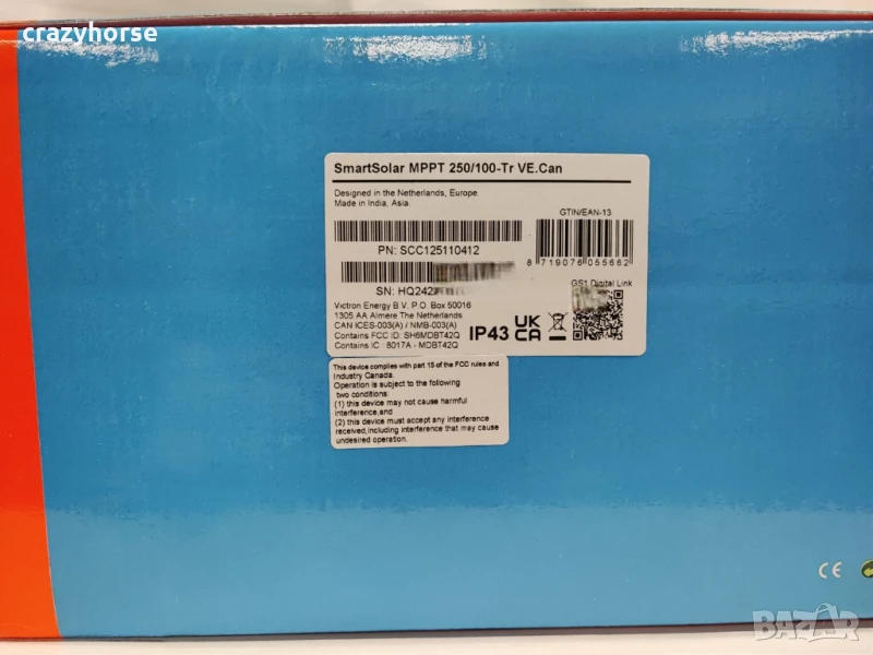 Victron SmartSolar MPPT 250|100-Tr VE.Can. Контролера е пускан само веднъж за тест и работи безупречно.