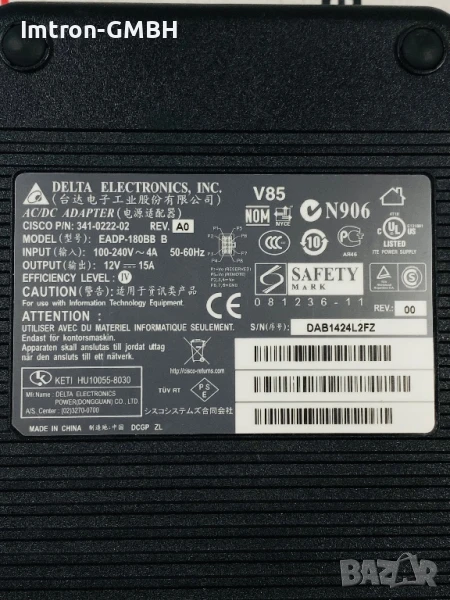 AC захранващ адаптер Cisco EADP 341-0222-02, EADP-180BB B, 12V, 15A, 8-пинов → Обява 51050521