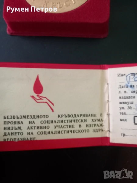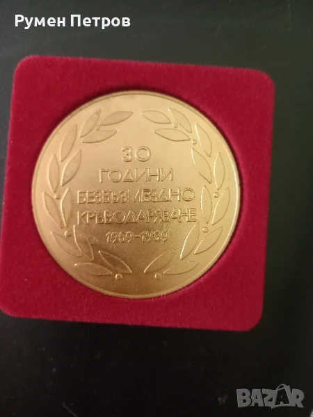 Награден плакет " 30 години безвъзмездно кръводаряване заедно с карта.." → Обява 51051308