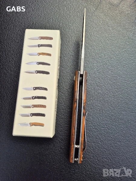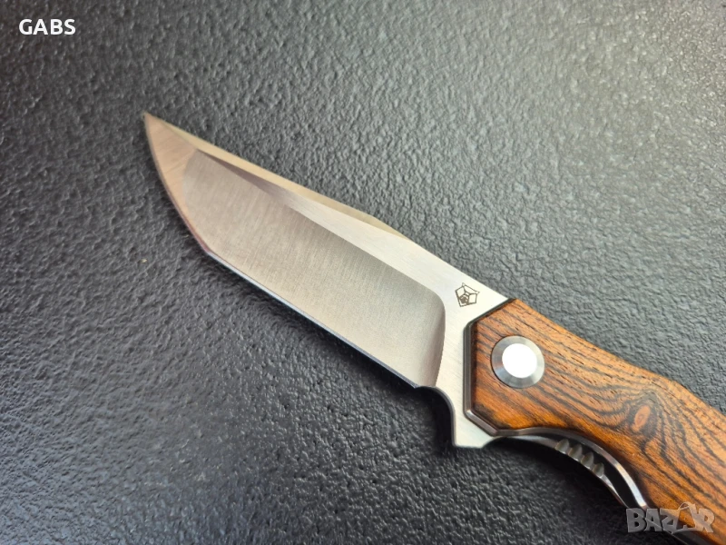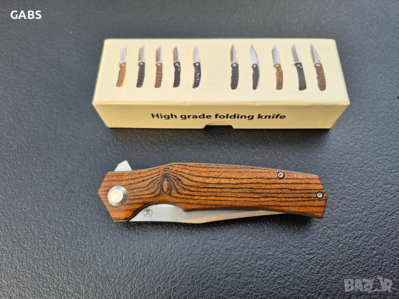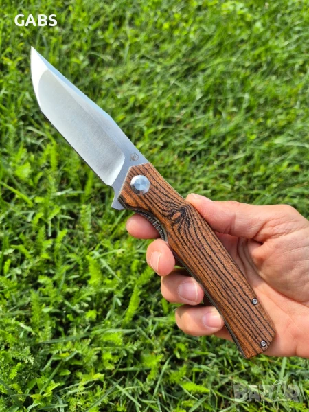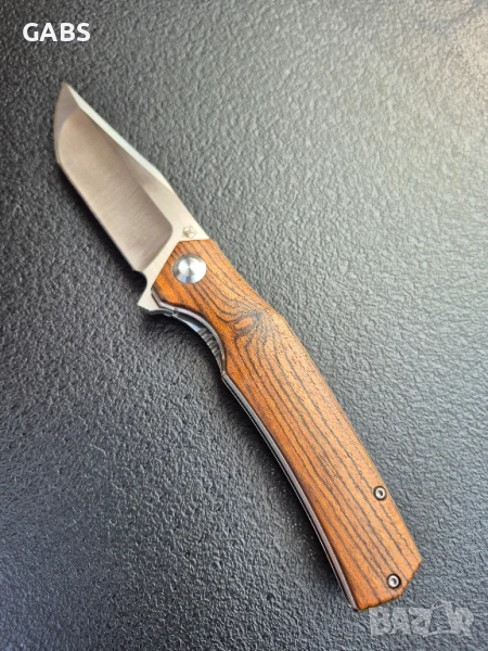 сгъваем нож SHIROGOROV.Изработен от висококачествена стомана D2 с уникална дървена дръжка.