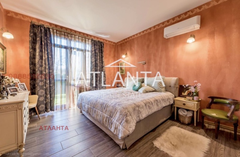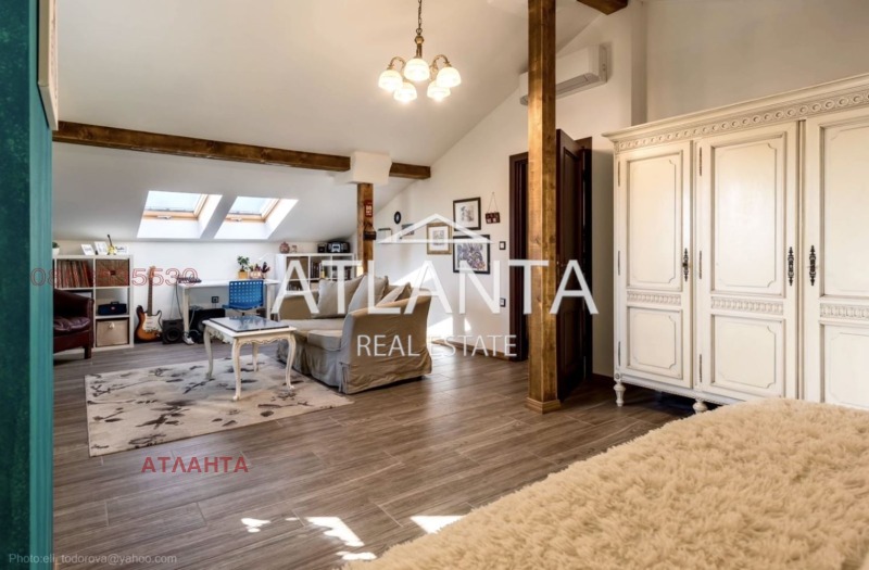 Просторна, обзаведена къща с 5 големи спални (от 16 до 45 кв.м), 5 бани, светла дневна с трапезария, килер, веранда, гараж за 2 автомобила и открит паркинг за още 3.